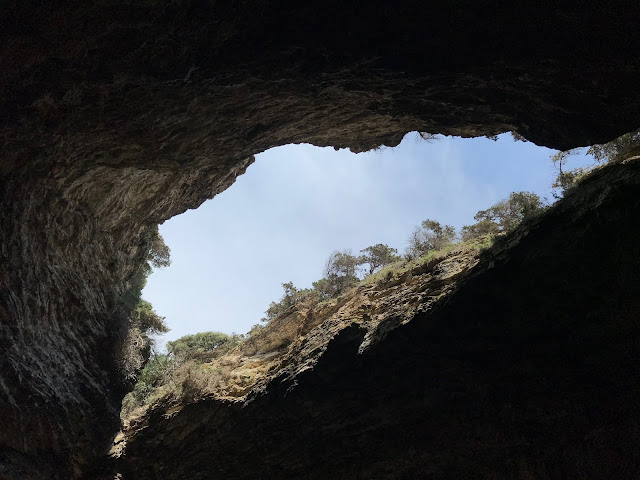さて、この洞窟に入ると自然にできた大穴が天井に空いています。